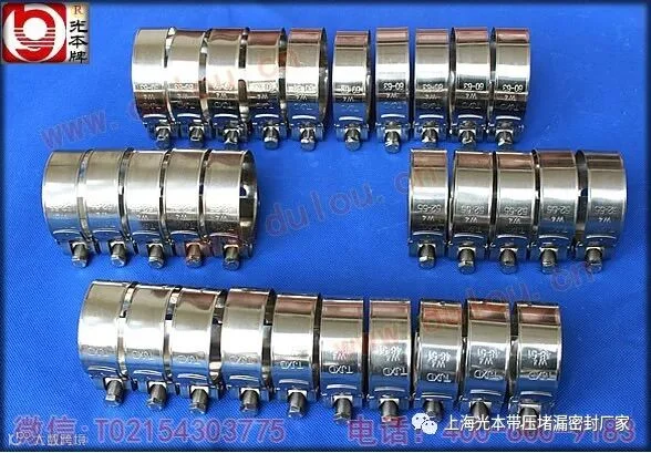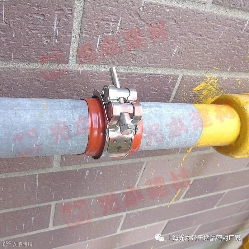 本品使用方法简单,将本品套在直管漏点部位,用扳手或者钳子拧紧连接螺栓会立即止漏。