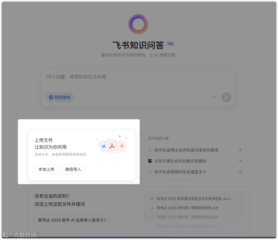 我以飞书知识问答为例,分享一下正确的AI 知识库搭建流程,这也是我踩坑两三年后的总结。搭建前一定要避开的大坑:千万不能直接把所有资料原样上传!这是90%的人都会踩的坑。因为我们积累的资料很多都是PDF、扫描件、手写笔记拍照、图片等格式,直接上传的话AI根本解析不准确,最后回答也是错的。我之前就吃过这个亏,上传了一堆技术文档,结果AI把跨页的表格理解得乱七八糟,问啥都答不对,这就很尴尬啊,还一直怪 AI 的能力差。后来发现需要用专业工具预处理。我现在用Doc2X这个文档解析API工具,专门解决这类问题。正确的AI 知识库搭建流程:1)企业资料整理:可以收集所有需要导入的工作资料,包括制度文档、技术资料、客户信息、项目策划和复盘等2)用Doc2X解析资料: 这是非常关键的步骤啊。Doc2X能把PDF、扫描件、图片等格式批量解析为结构化的Markdown或HTML文件,这些格式对AI识别更友好,便于后续理解和检索。Doc2X传送门:https://doc2x.noedgeai.com/比如财务报表的跨页表格,Doc2X可以智能识别表格边界并自动合并,保证数据完整性。技术文档中的公式也能准确转换为标准格式。而目前的 AI工具基本都做不到的。3)解析后内容上传AI知识库:将Doc2X处理好的结构化内容导入飞书知识问答,这样AI就能准确理解文档内容了。基本上有什么内容就上传什么内容,完全不需要整理直接上传就行。4)智能问答/检索:我们通过自然语言提问就行了,AI基于高质量数据进行理解和回答,准确率大幅提升,这样才能让企业资料真正产生价值。我实测过,用Doc2X预处理的文档,AI回答准确率能从30%提升到90%以上。另外,Doc2X 已成功接⼊ FastGPT、CherryStudio、扣⼦(国内版)等知名知识库和AI应⽤构建平台。开发者可以直接在这些平台中直接调用Doc2X API 即可调用强⼤解析能⼒,快速搭建自己的 AI 知识库。如果你对Doc2X 使用有任何问题,可以咨询 v:Doc2XOfficial