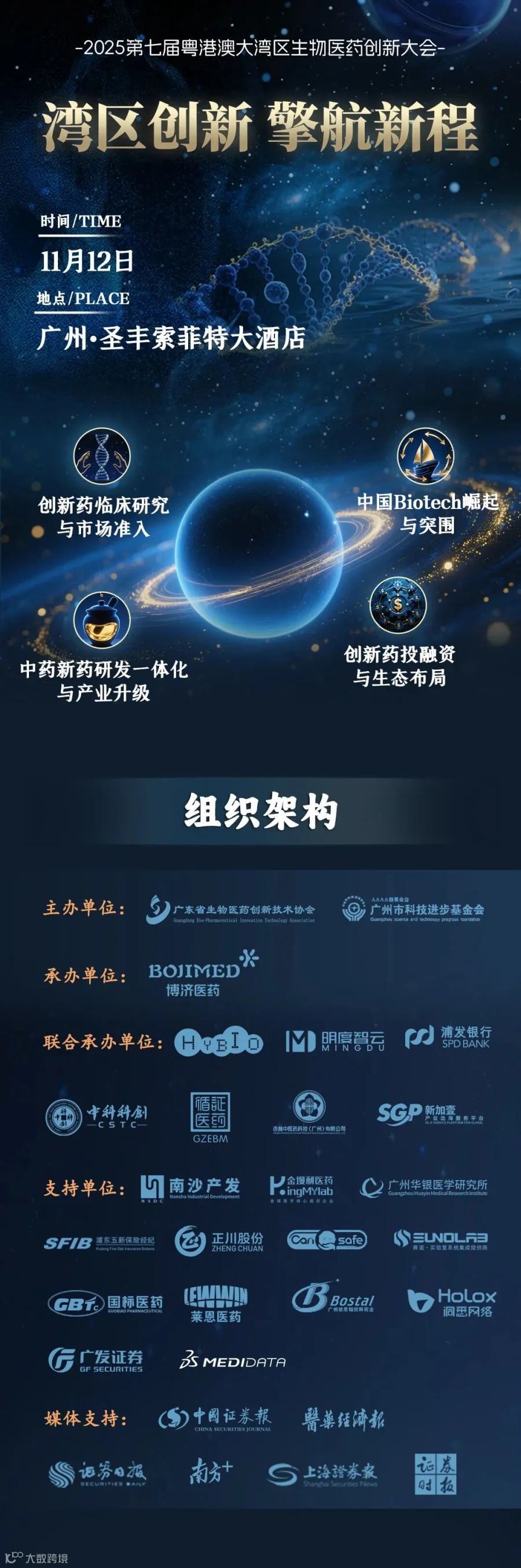 下周三,11月12日,玻思韬与您相约第七届粤港澳大湾区生物医药创新大会,让湾区新药人与未来双向奔赴!会议全程免费,扫码即可报名!