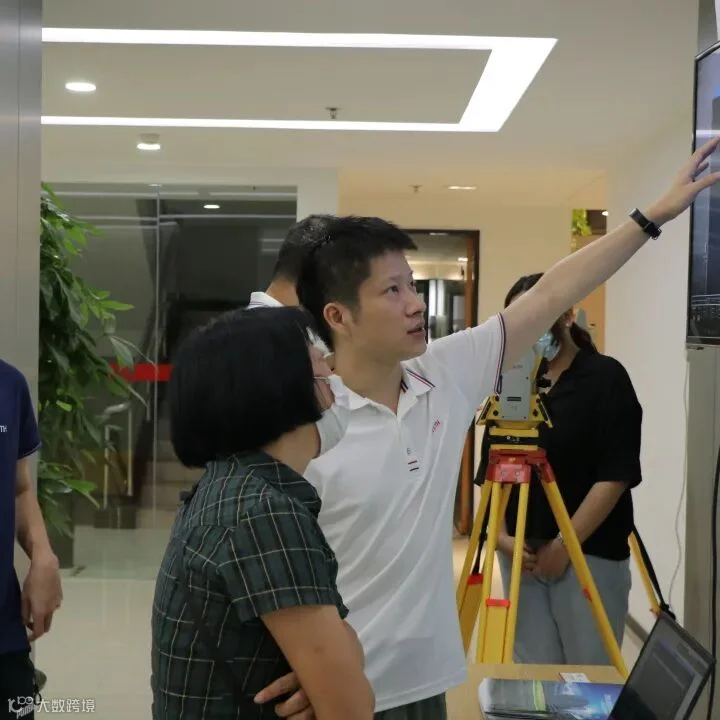 接着,智能精密测量技术总监黄鸿伟与各位老师就“数字化施工探索与实践”进行交流,重点分享了数字化测量现状与发展。技术部副经理吕胜利以建筑工程不同阶段的监测为例阐述新时代监测技术对人才的需求,并强调搭建全面性、专业性的教学平台的必要性。技术部技术工程师龚智行分享激光扫描在不同建筑生命周期中的多种应用,分别介绍了激光扫描技术在建筑施工质量检测、基坑监测、复杂建筑表面积测量、古建筑扫描等场景应用。数据工程部项目经理王彬宇分享了备受行业重视的激光扫描技术在地形测量中的应用及技术特点,以及和别的手段结合运用,实现真全要素地形图生产。