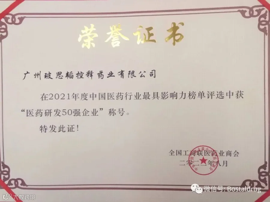 2023年3月25日-27日,全国工商联医药业商会年度峰会在中国青岛隆重举行。会议上发布了2021-2022年度中国医药行业最具影响力榜单,玻思韬榜上有名,再次荣获“中国医药研发50强企业”称号。