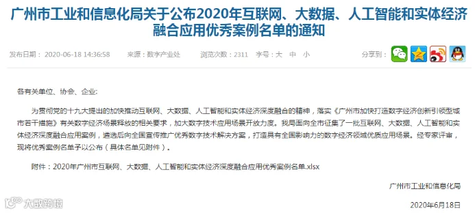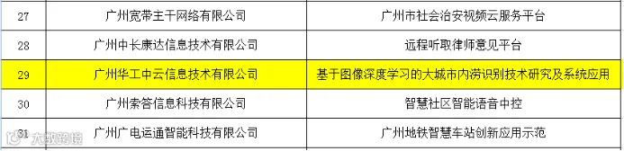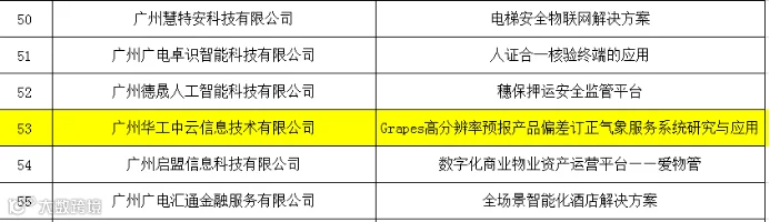 经过层层严格选拔,华工中云研发项目---《基于图像深度学习的大城市内涝识别技术研究及系统应用》、《Grapes高分辨率预报产品偏差订正气象服务系统研究与应用》成功入选广州市工业和信息化局2020年互联网、大数据、人工智能和实体经济融合应用优秀案例(全市仅73个),并在广州市工业和信息化局官方网站公示。
