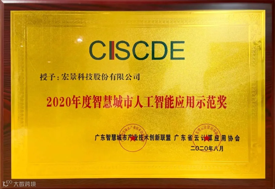 广东企业数字化转型发展论坛论坛近日在广州开幕。宏景科技凭借在智慧城市人工智能领域的突破与创新,荣获“2020年度智慧城市人工智能应用示范奖”。