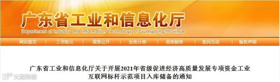 根据《关于印发省工业和信息化厅经管专项资金管理办法的通知》(粤财工〔2019〕115号)、《广东省财政厅关于做好2021年省级财政资金项目入库储备工作的函》(粤财预〔2020〕38号)、《广东省工业和信息化厅办公室关于印发省级财政资金项目库管理办法的通知》(粤工信办函〔2020〕25号)等有关工作要求,现就组织2021年省级促进经济高质量发展专项资金工业互联网标杆示范项目入库工作有关事项通知如下: