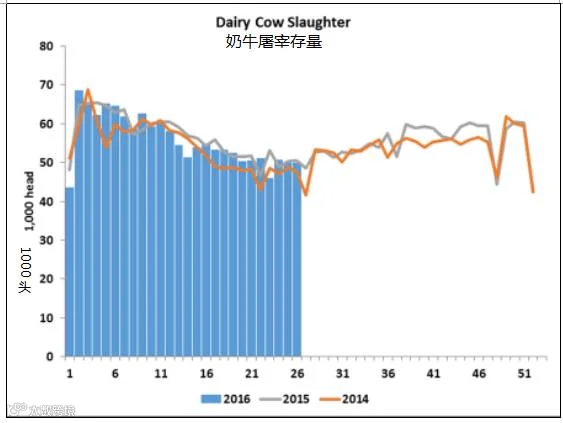 本周截止6月25日,奶牛屠宰量总计为48,974头,与去年这个星期相比,下降了1.4%。今年至今的屠宰率也比去年下降了1.4%。