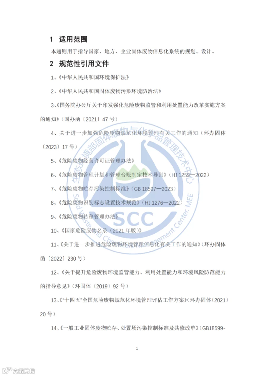 为进一步贯彻落实《固体废物污染环境防治法》,推进固体废物收集、贮存、运输、利用、处置等全过程监控和信息化追溯,促进固体废物环境管理信息互联互通和共建共享,结合生态环境部关于固体废物信息化管理工作要求,我中心组织完成《固体废物信息化管理通则(2024年版)》的编制,供各地开展固体废物环境信息化管理系统建设和应用工作时参照执行。