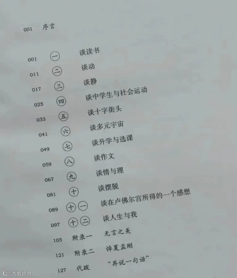 十二封信中部分篇章现在读来或许已经不合时宜,如《谈升学与选课》、《谈中学生与社会运动》,这些章节的年代背景与我当下的人生阶段都不甚谋合,但其余篇章给我颇多启发,以下是我最近重读后的一些感悟。