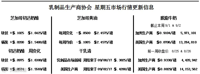 加州4a牛奶$15.93/100磅 加州4b牛奶$15.02/100磅