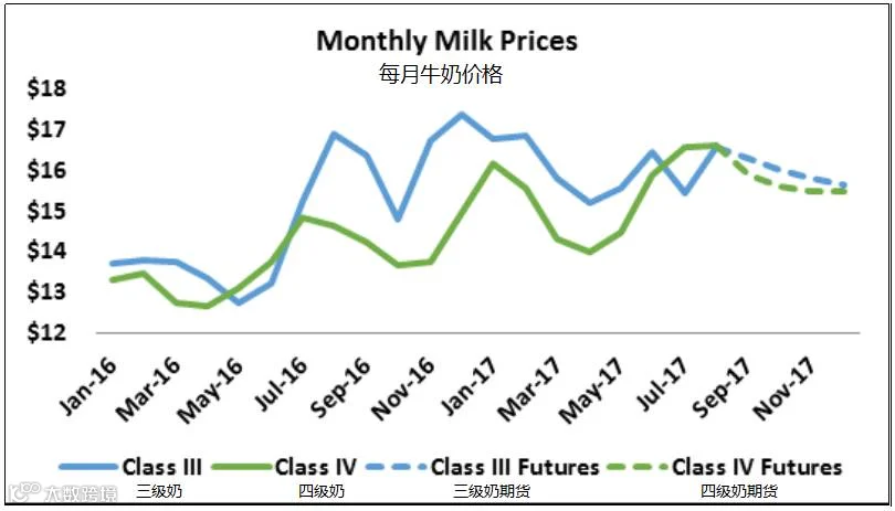加州4a牛奶$16.17/100磅 加州4b牛奶$14.41/100磅
