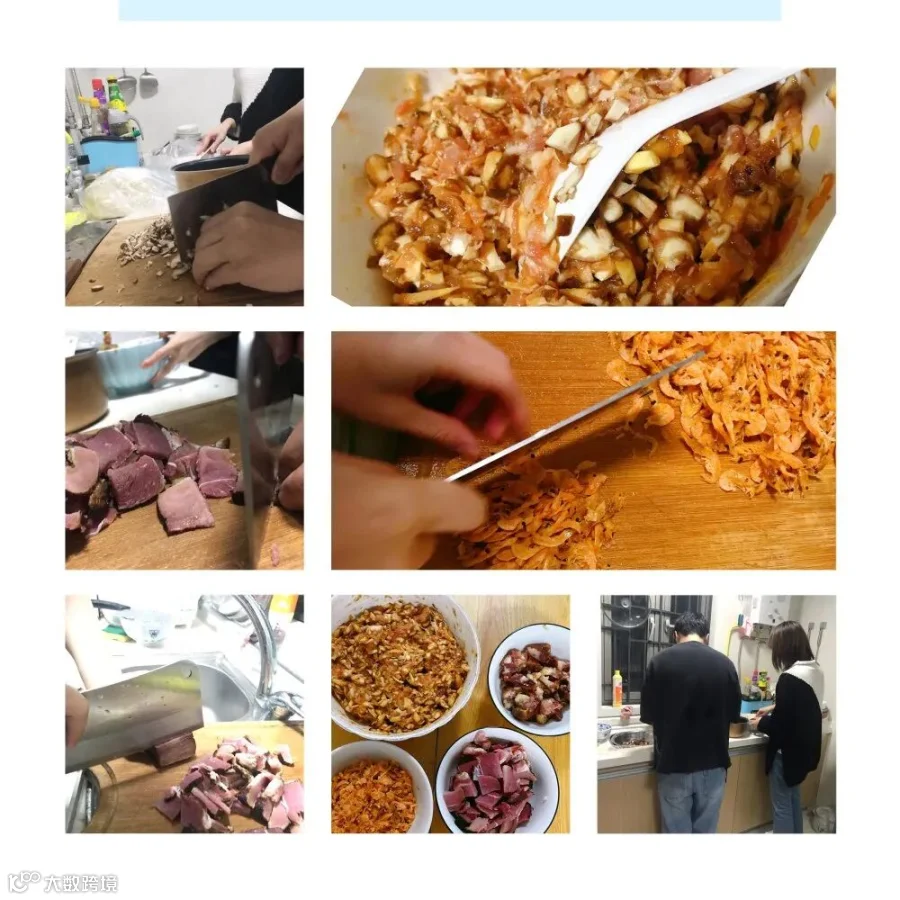 活动现场大家分工协作,洗菜、切菜、调料、擦桌子,忙得热火朝天,笑语不断,脸上写满快乐和幸福;一切准备就绪,大家纷纷撸起衣袖,你包馅,我烹饪,你煮汤圆,我下水饺,配合默契,其乐融融。