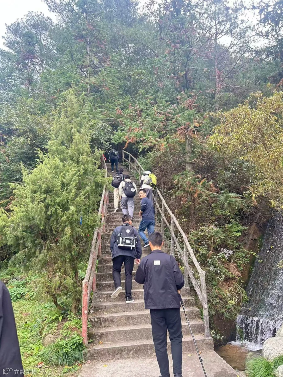 峰上云雾缭绕,山径蜿蜒曲折,万马泰科团队士气大振,坚持着走过步步阶梯,响应着我们的口号,“勇攀高峰,砥砺前行”。