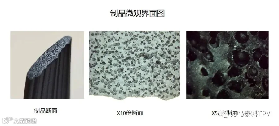 新能源产业中汽车对于轻量化有着更高的追求,发泡TPV材料不仅仅能够有效降低制品整体比重30%以上,更因其特殊微发泡球面结构,能够降低风噪,隔热保暖,可以有效降低整车的能耗。
