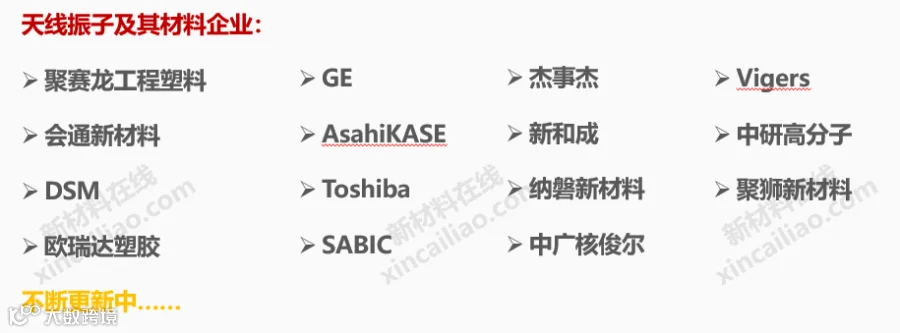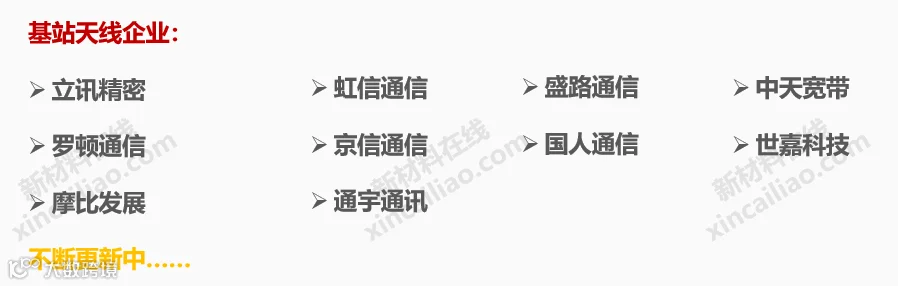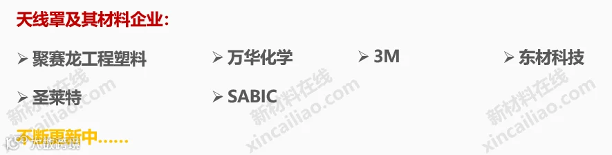2018-2019年,国内外知名材料企业纷纷布局5G产业链,5G材料成为了材料行业最火热的名词。5G产业链需要的材料品种异常丰富,从金属材料、陶瓷材料、工程塑料、玻璃材料、复合材料到功能材料(导热、散热、电磁屏蔽、防水等),都有着巨大的市场空间。
