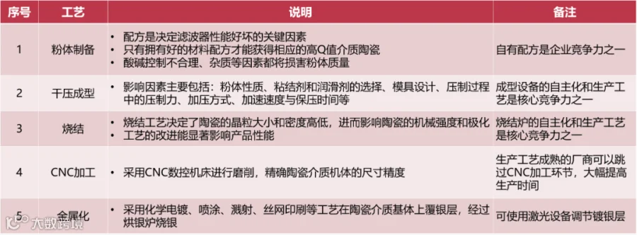 ▲陶瓷滤波器生产核心工艺环节