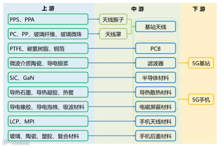 ▲5G关键材料及零部件产业链结构图