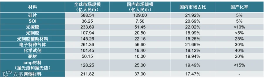 ▲半导体材料进口替代市场数据