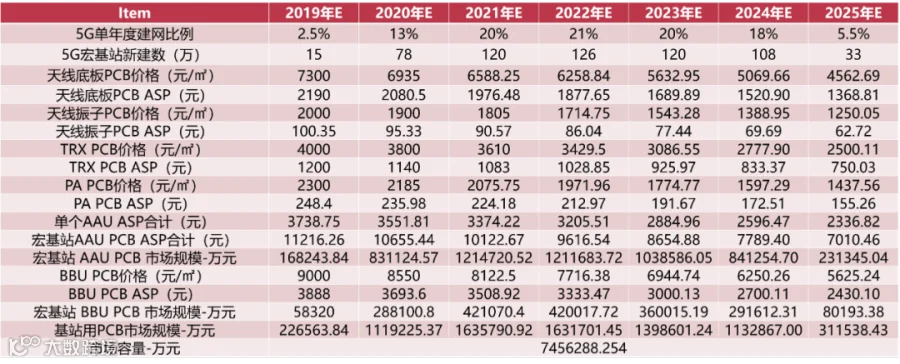 ▲5G宏基站PCB用量测算