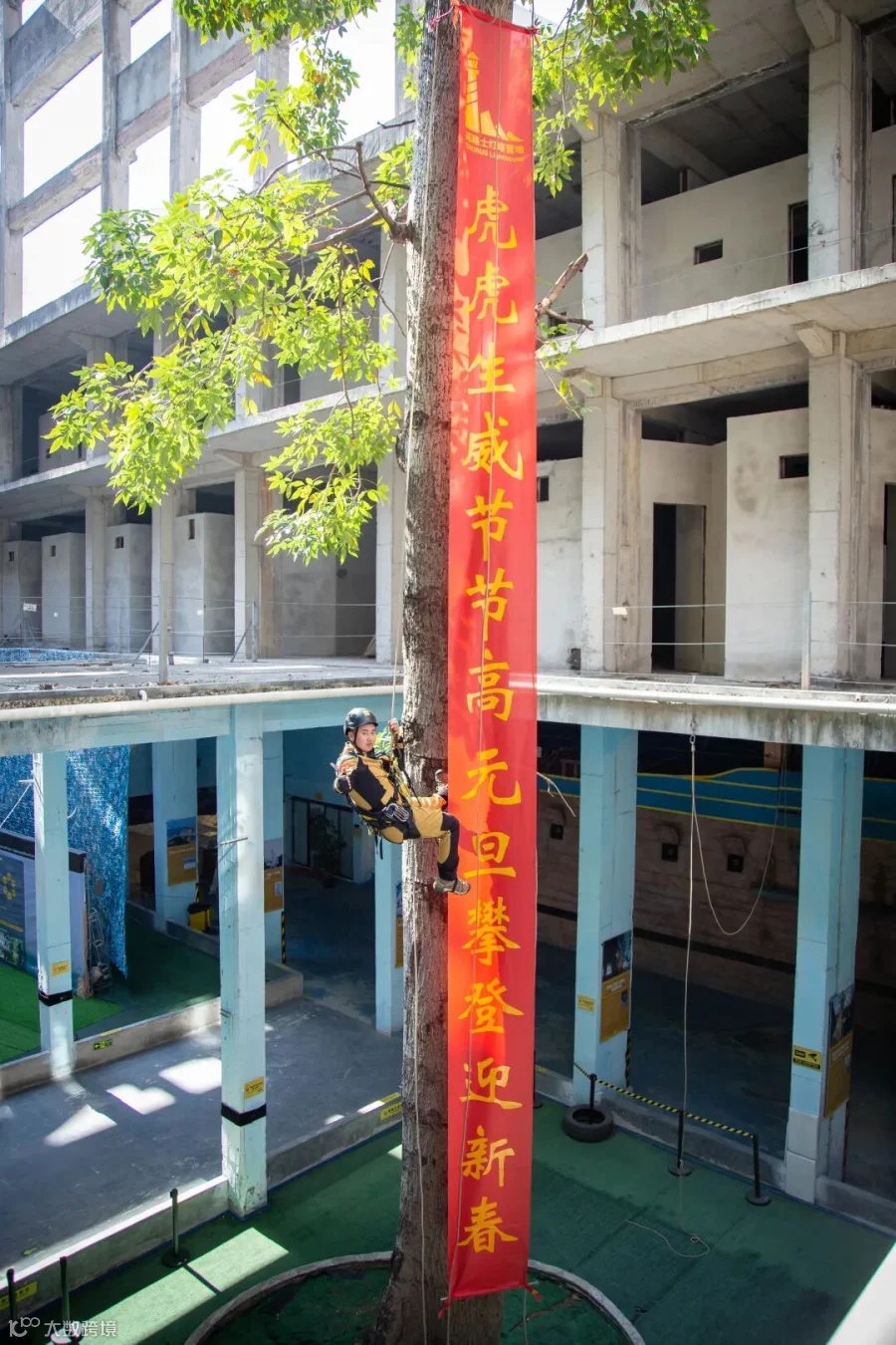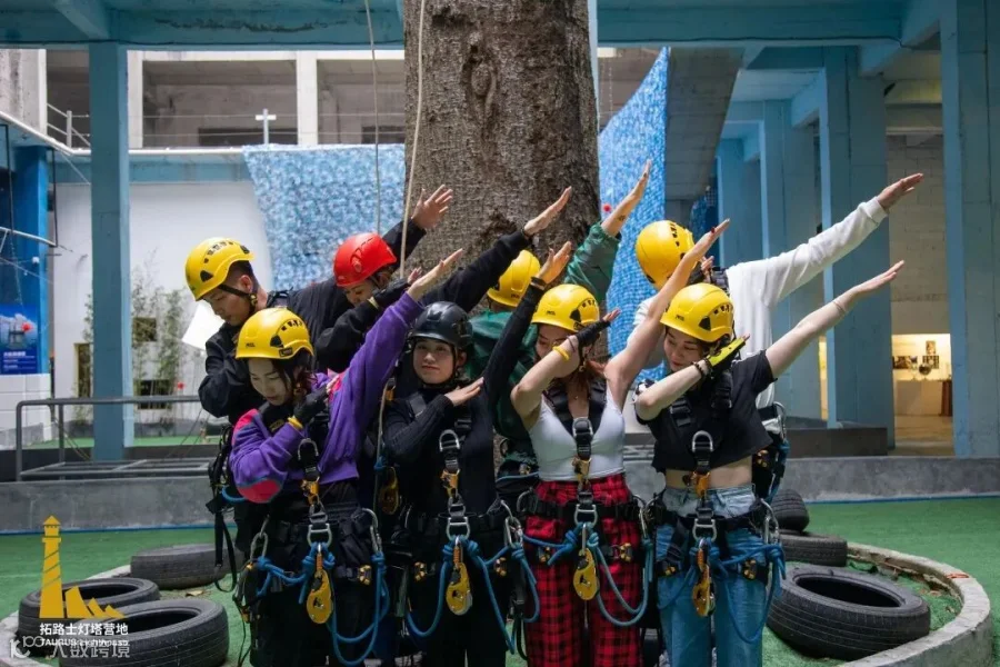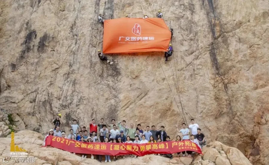 我们在拓路士广州灯塔营地,为新一年攀登挂上巨幅的深深祝福。
