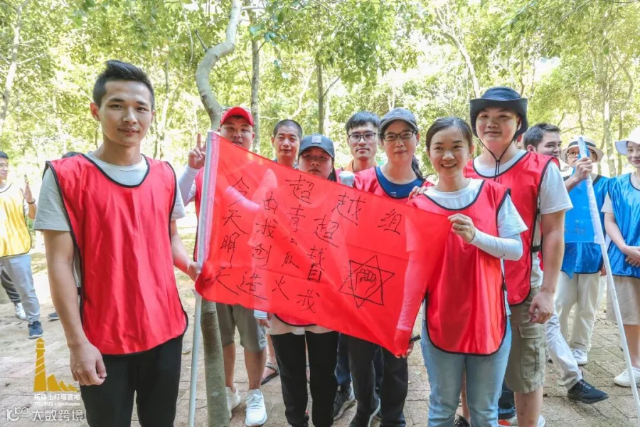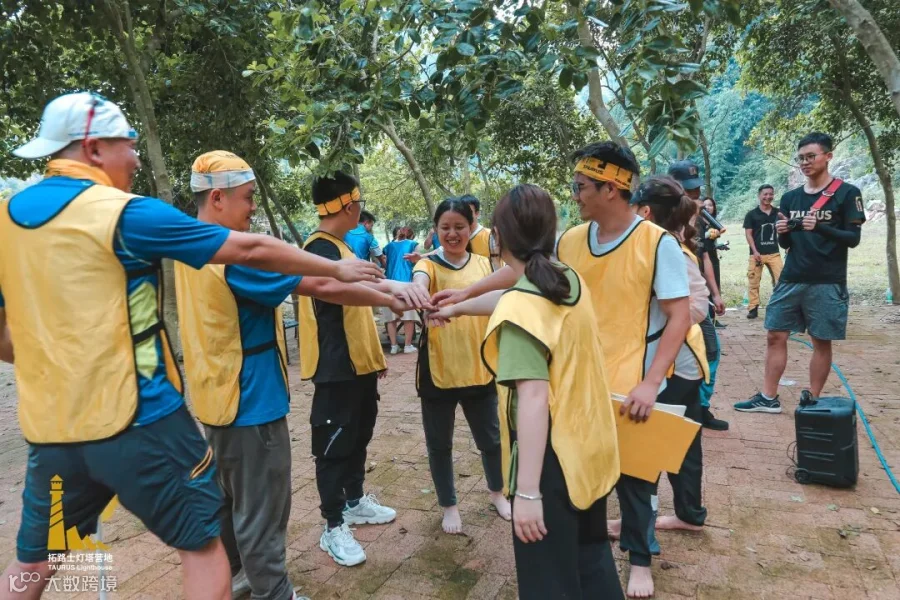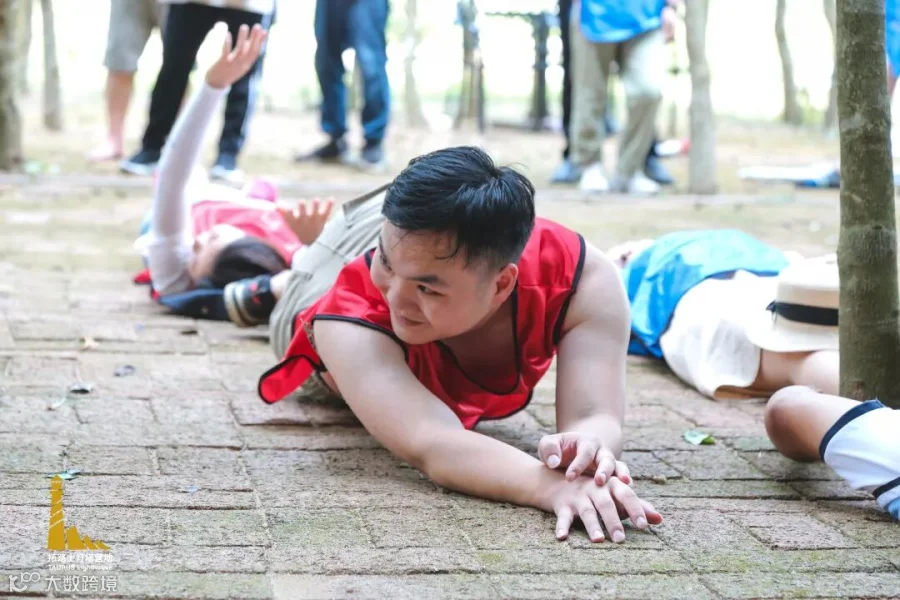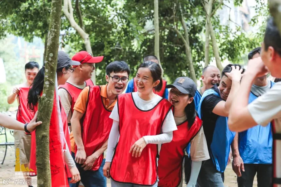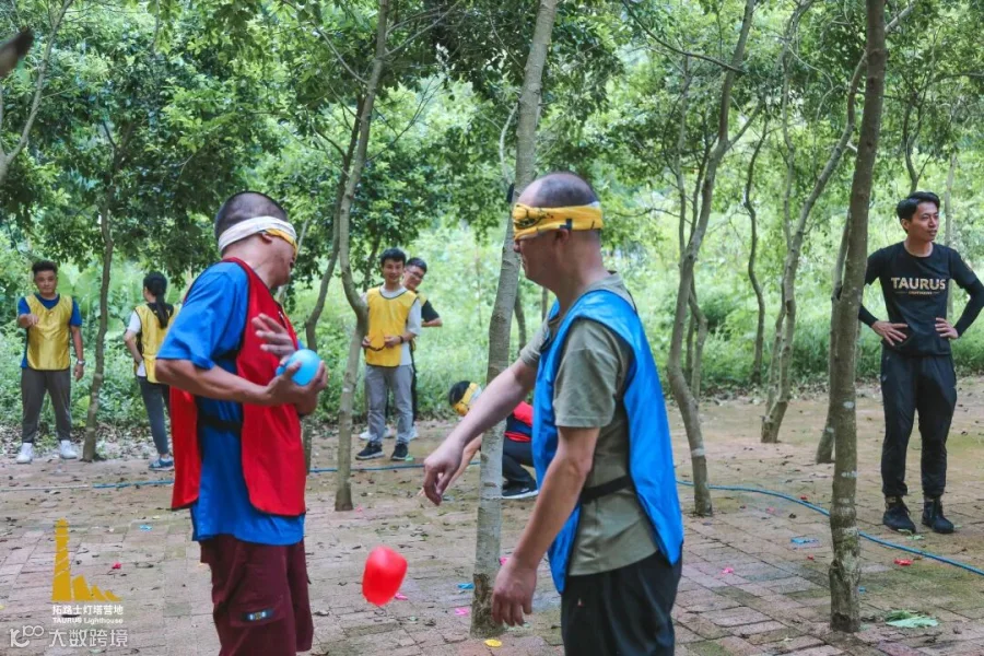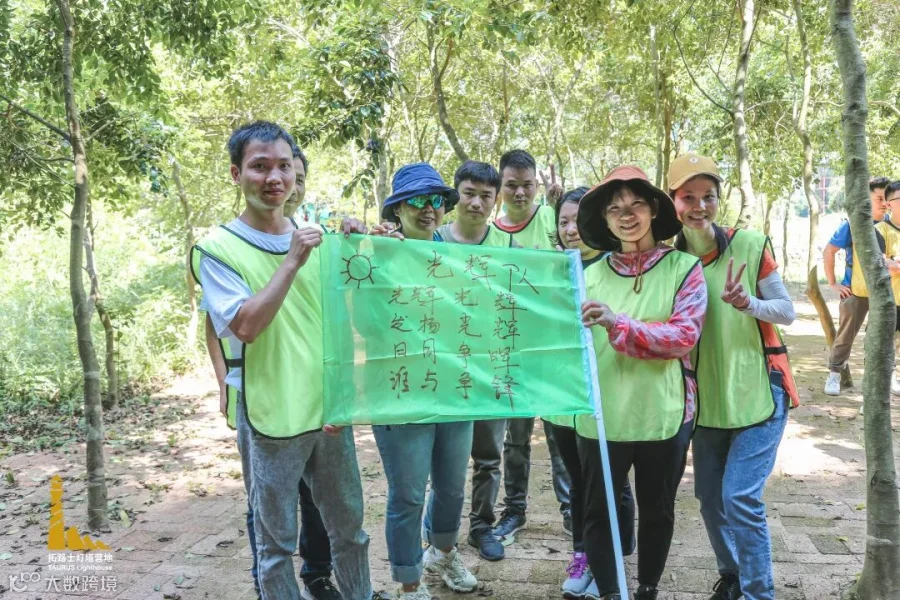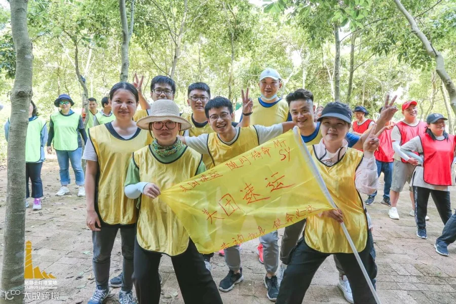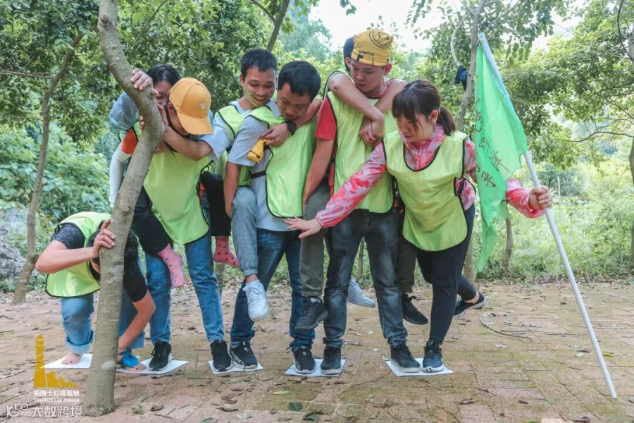 没有阳光暴晒的树林中,大伙儿轻装上阵!铆足力气,发挥团队聪明才智,玩得不亦乐乎!