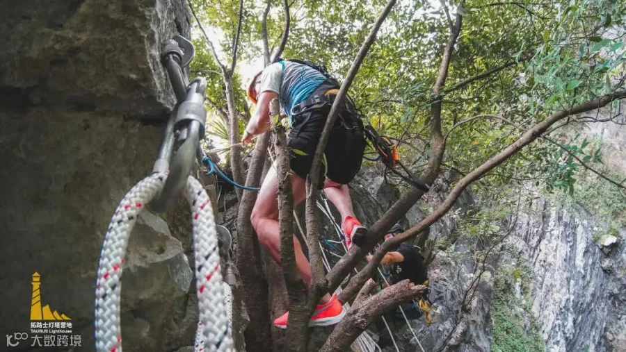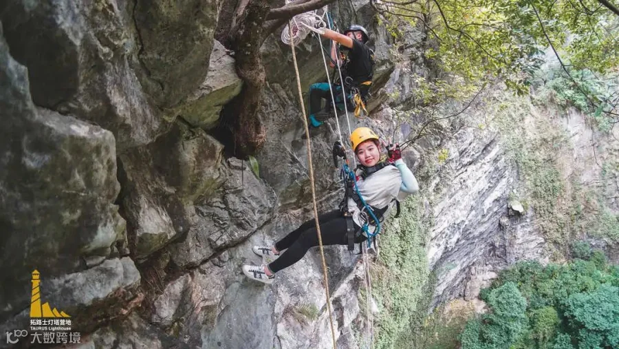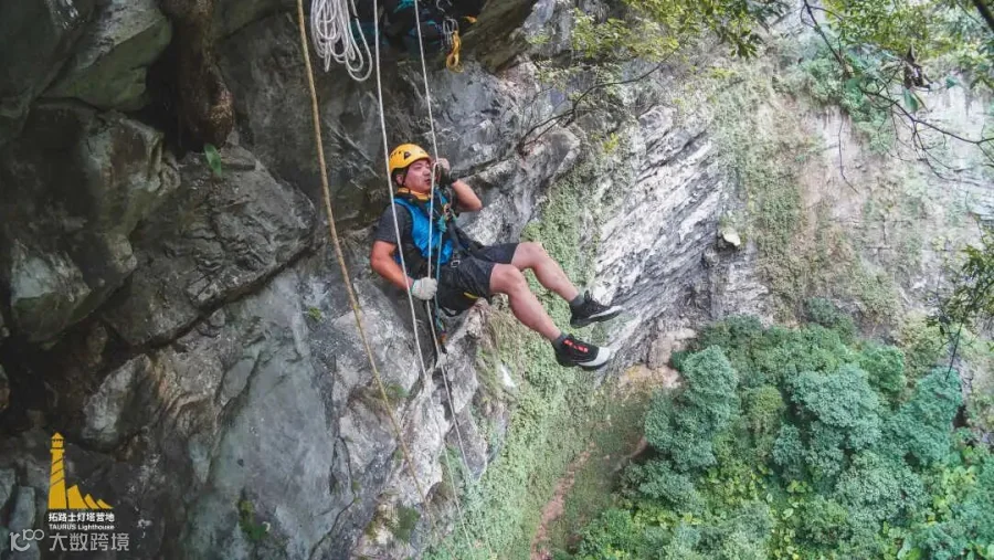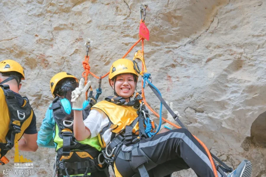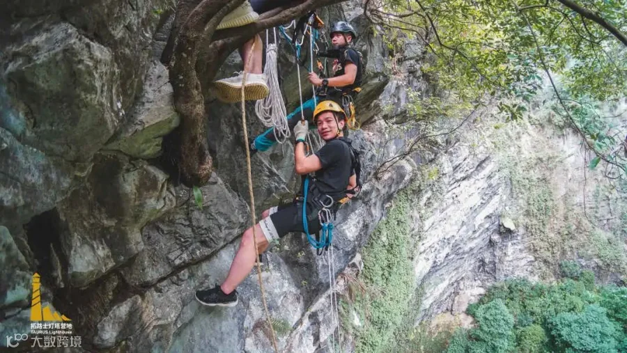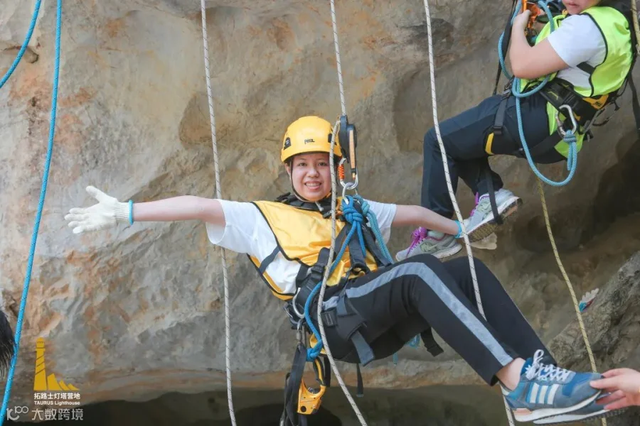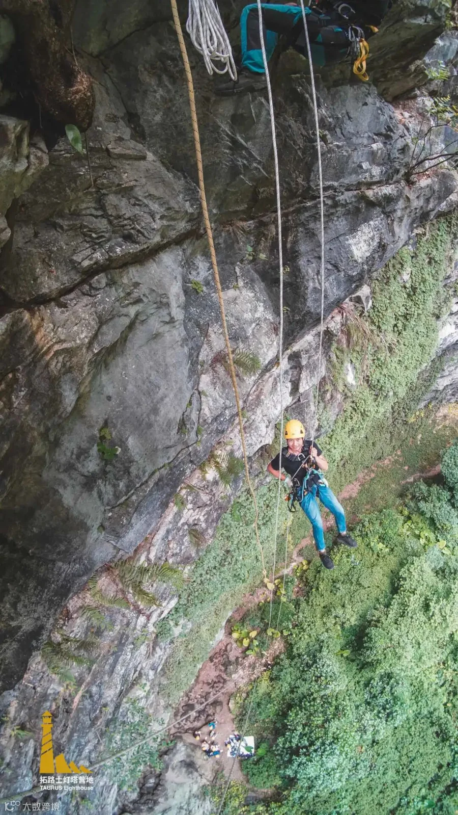 别看这悬崖峭壁着实有点吓人,但是运用绳索的技巧,队员们一个一个,犹如雏鹰,开始展翅拥抱不一样高度的天空!