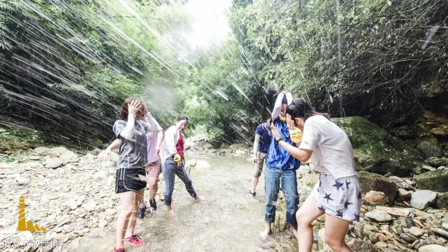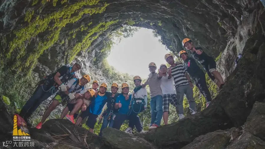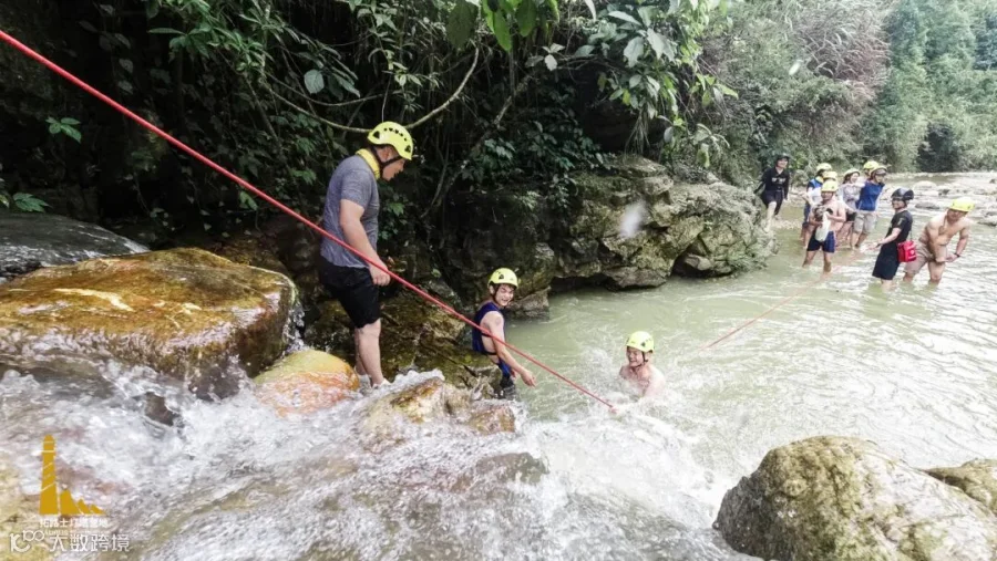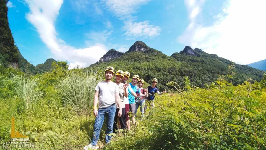 兵分两路,另一组小伙伴们已经开始在峰林绵延的风光里,开始了探洞溯溪喽!