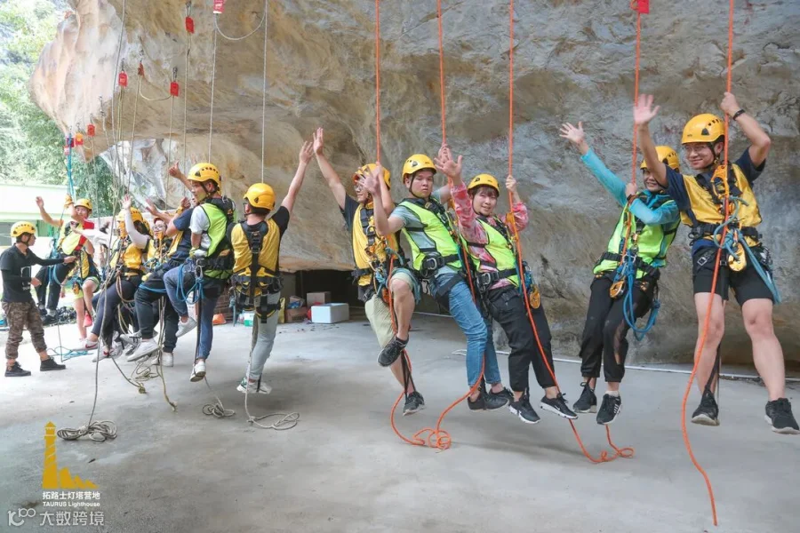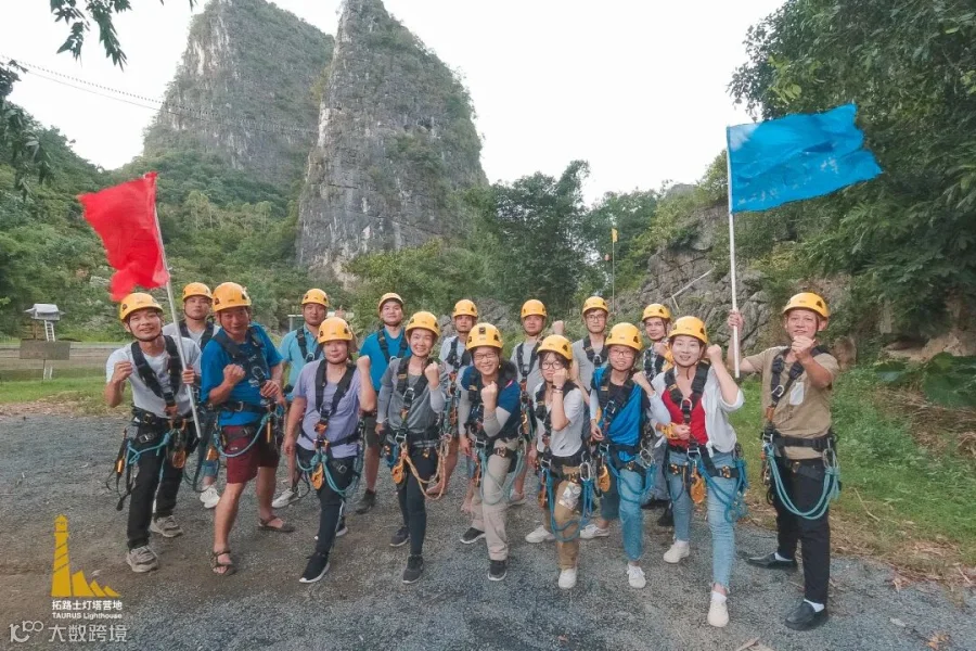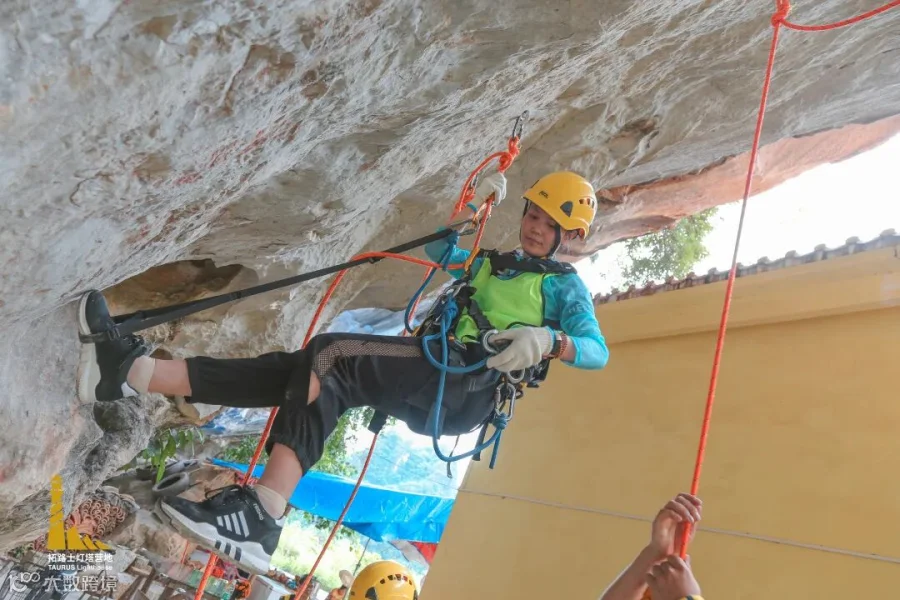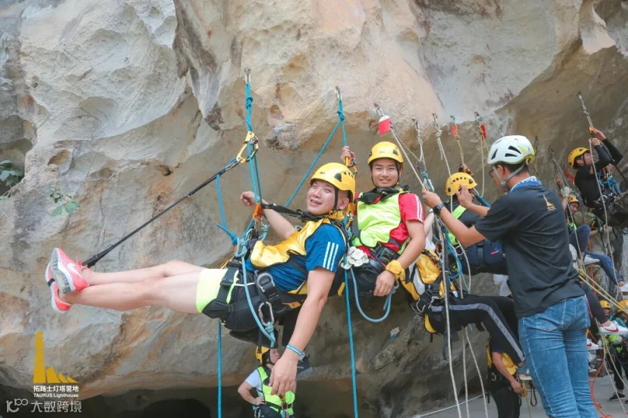 红蓝两队即将开始在风景如画的英德,首先进行现代绳索运动的入门训练!