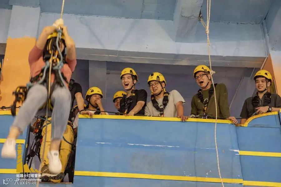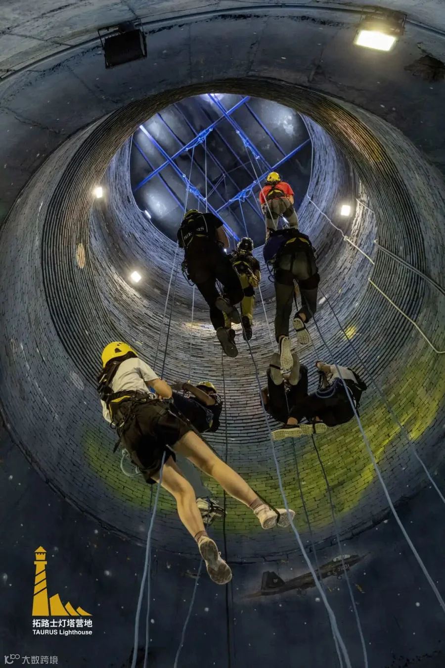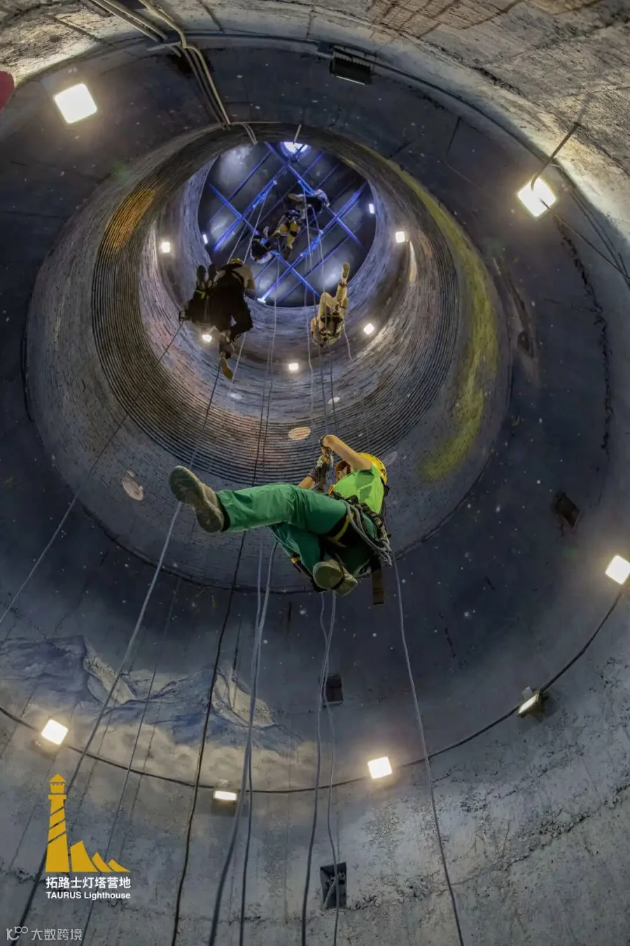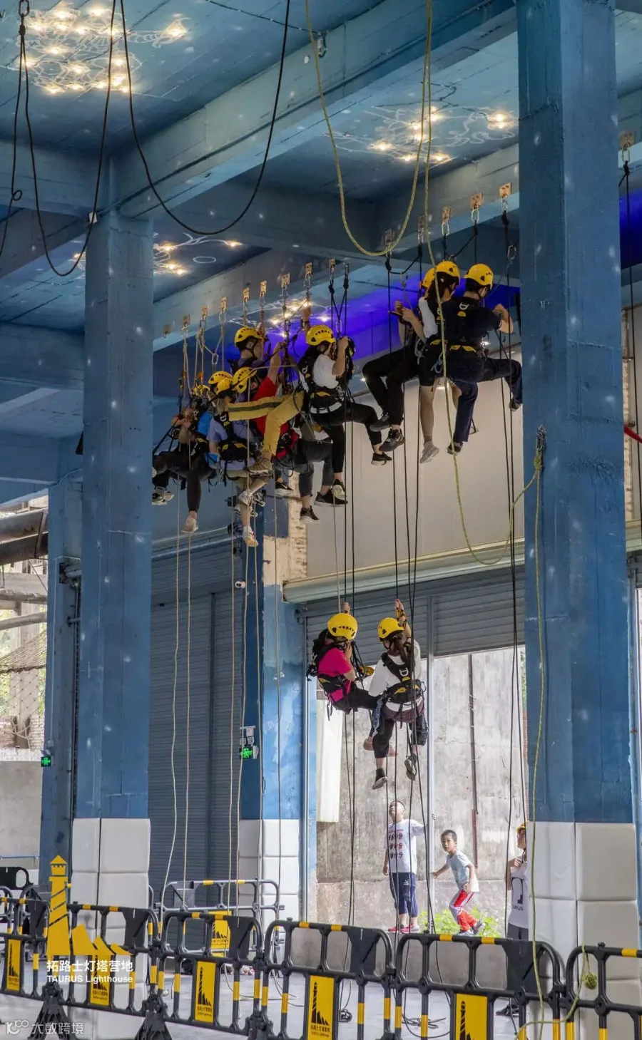 20米的垂直高度,利用绳索上升的力量,小伙伴们一起发力,朝着灯火闪耀处前行!