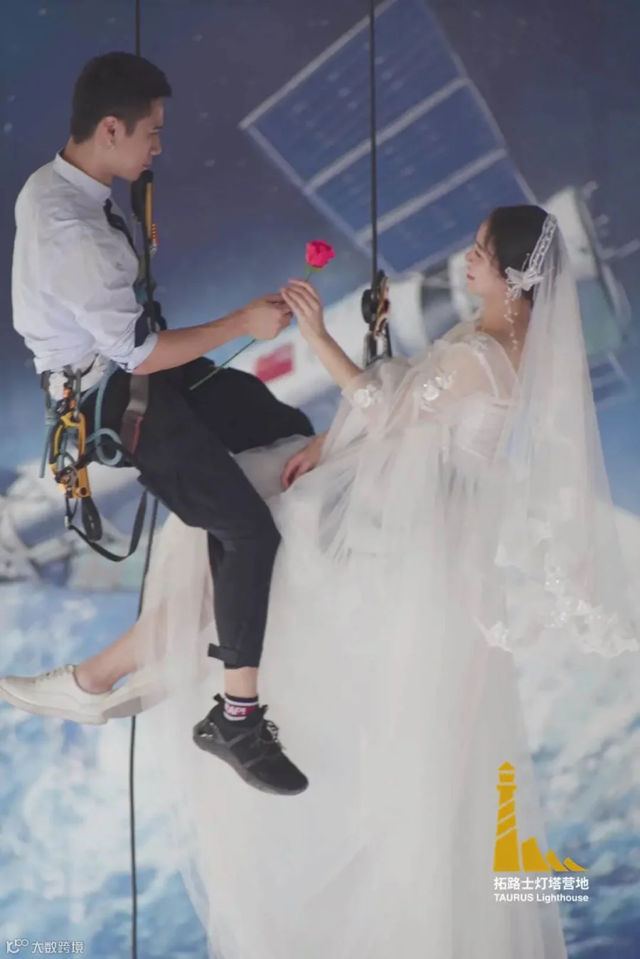 在这个特别的日子,一场绳索上的浪漫婚纱记忆,必将记录下你和她最怦然心动的时刻。