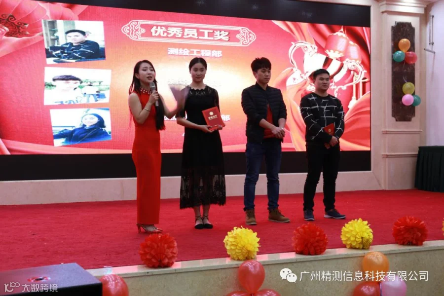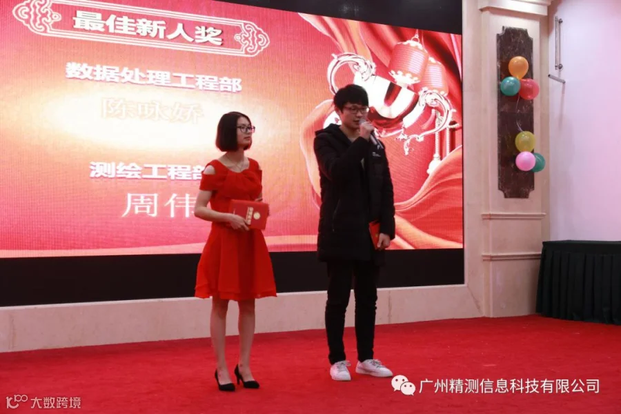 2018年2月8日星期四,广州精测信息科技有限公司成立五周年庆典暨2017年总结大会在广州市白云区五龙山庄隆重举行。总经理卢临魁、副总经理杨兆明、副总经理兼数据工程部经理关玮佳、人力资源部经理关庆庆、项目管理部经理黄芳燕、测绘工程部副经理廖月跃等出席会议,与全体员工及部分家属代表欢聚一堂,回顾精测成立五年多以来的历程和成绩,总结2017,展望2018。对公司各岗位突出表现的员工颁发了杰出贡献、优秀部门经理、优秀项目领头人、优秀员工、优秀新人等奖项。会议由副总经理关玮佳、人力资源部经理关庆庆主持。
