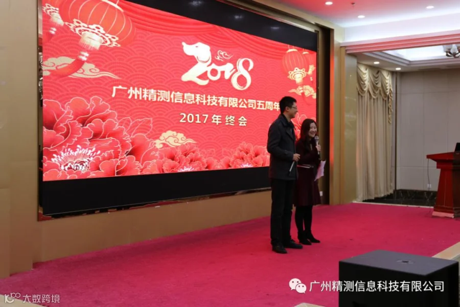 在温馨的宴会大厅,在精测故事的视频音乐中,2017年终晚会拉开序幕。