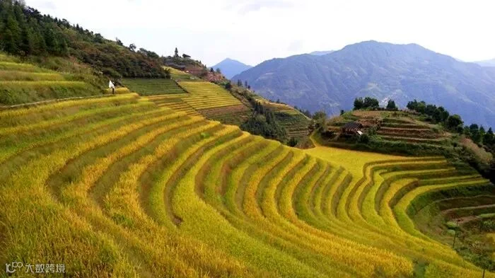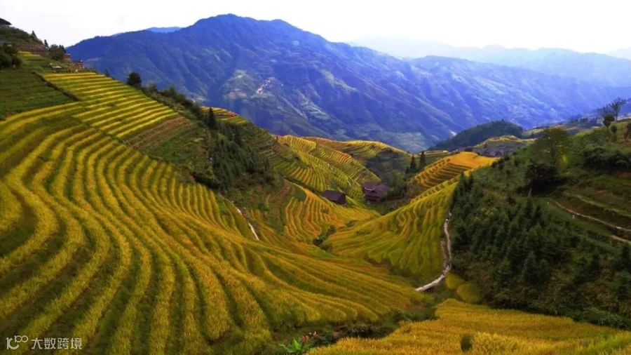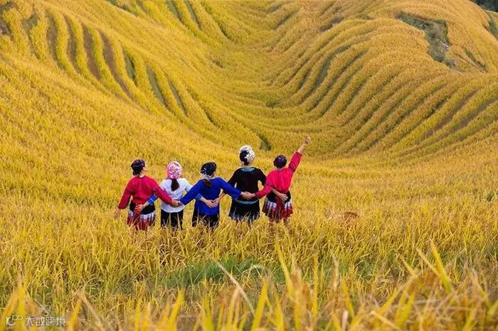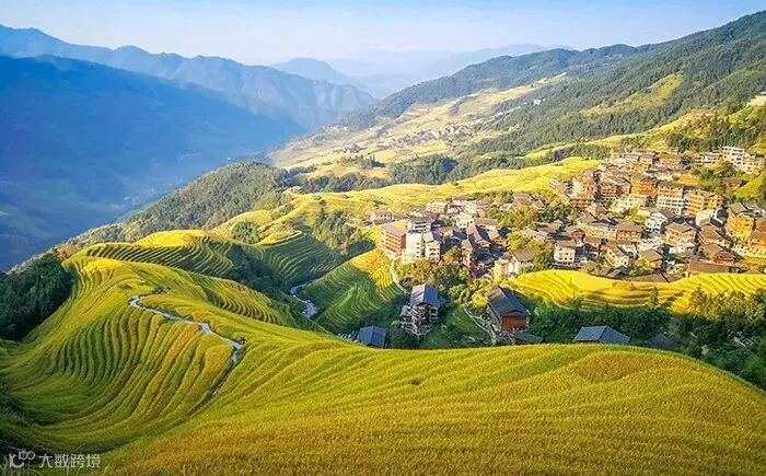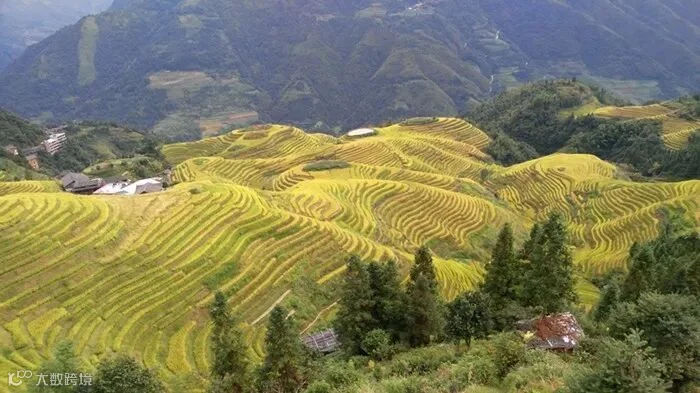 秋天的龙脊梯田美得让人难以呼吸,闪着金光的层层梯田,犹如捧着一张可以传世的油画
