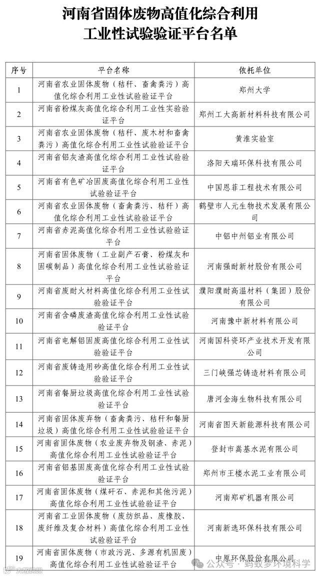 关于公布河南省固体废物高值化综合利用工业性试验验证平台的通知