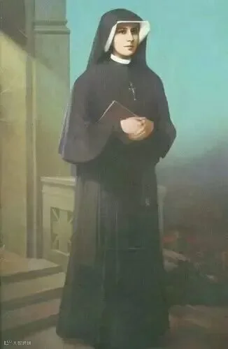 她遵从修会纪律所规定的克苦,带了小铁链,伸开两臂祈祷。她非常尊重修会的规定,在厨房做饭时,也穿着苦衣。