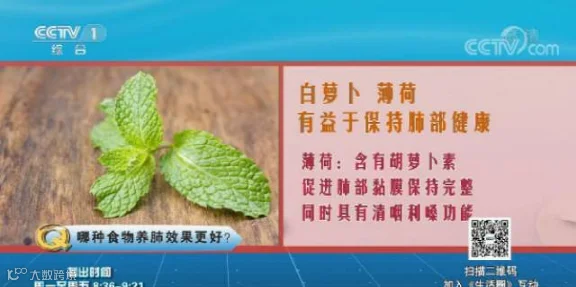 白萝卜和薄荷有益于保持肺部健康。薄荷中的胡萝卜素很高,可以促进肺部黏膜保持完整,同时还具有清咽利嗓的功效。