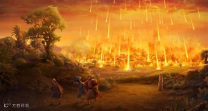 “当时耶和华将硫磺与火从天上耶和华那里降与所多玛、蛾摩拉,把那些城和全平原并城里所有的居民,连地上生长的,都毁灭了。罗德的妻子在后边回头一看,就变成了一根盐柱。亚伯拉罕清早起来到了他从前站在耶和华面前的地方,向所多玛蛾摩拉和平原全地观看,不料那地方烟气上腾,如同烧窑一般。”(圣经创世纪19章24-28节)