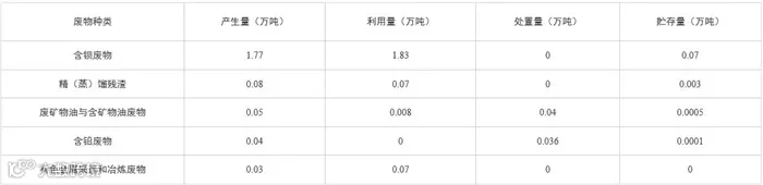 表1 一般工业固体废物主要种类产生、利用及处置情况