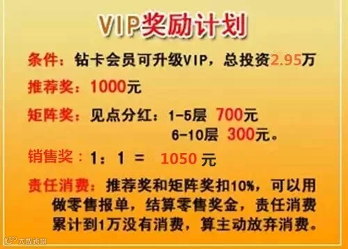 本奖金周结周发,如果你是VIP会员,当你直接推荐一个VIP会员,你把他安置在你的1-5层你就有700元奖金,如果你安置在5-10层,你就有300元奖金。