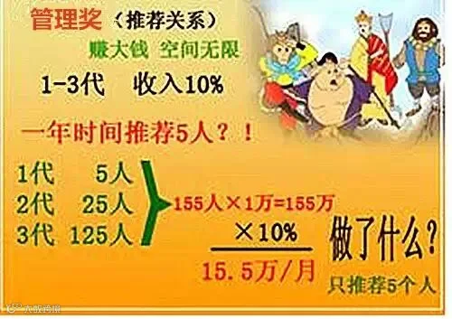 (155人X1万=155万,155万X10%=15.5万/月)你做了什么?只是推荐了5个人是不是?