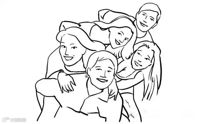 2、选一个人(脸最小!)站在最前面,然后其他人从旁边探出头。
