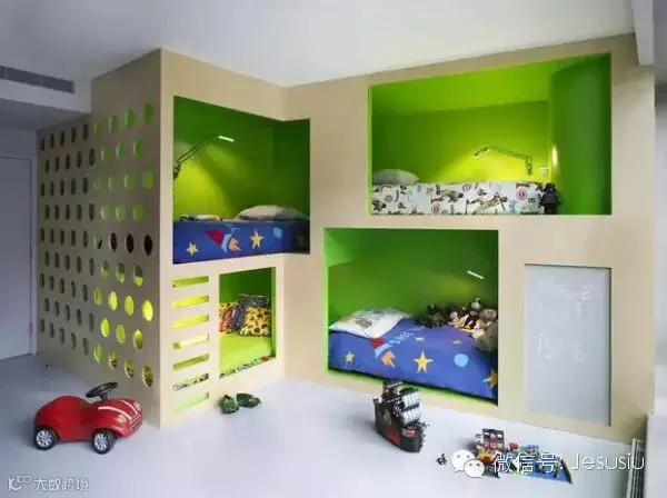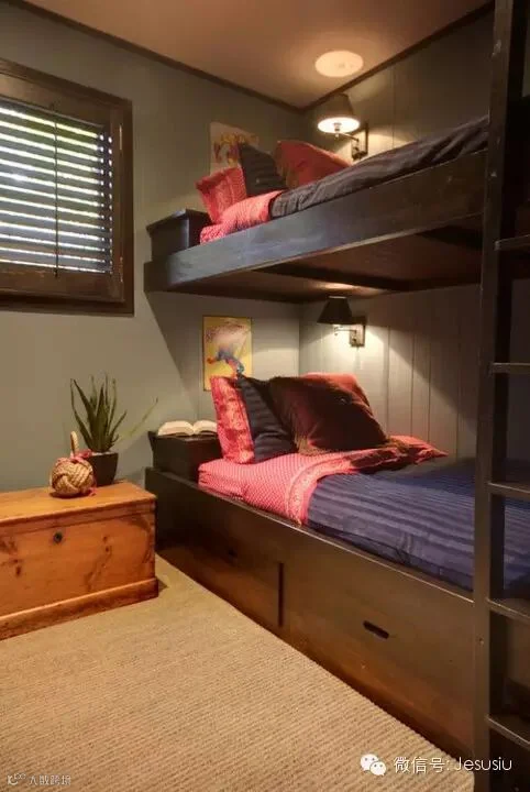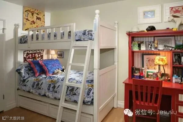 如果家里面有两个及以上的孩子,上下床就是孩子们非常好的卧室家具,一来省空间,二来能让孩子们的感情相互促进,从小就能学会相互帮助。