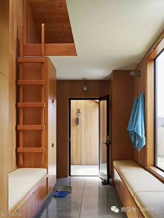 下面是休息去,顶部是休息区;休息区安静而有隐私,木质的材质,线条极美。