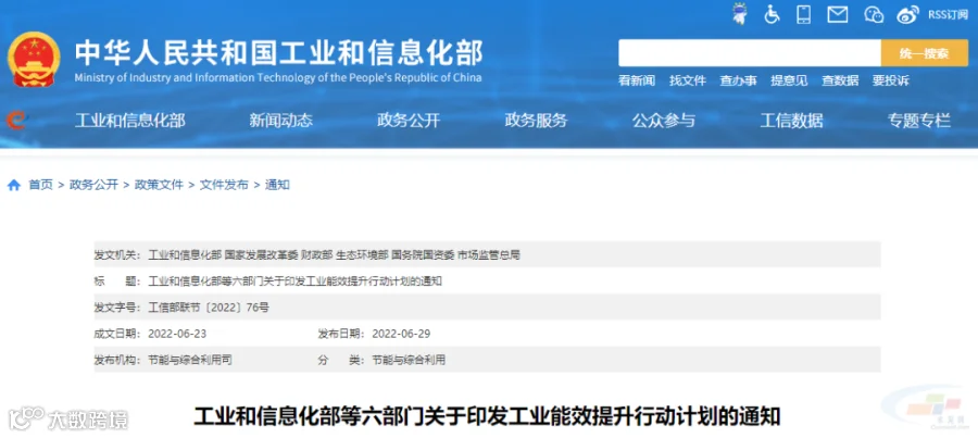 近日,工业和信息化部、国家发展改革委、财政部、生态环境部、国务院国资委、市场监管总局近日联合印发《工业能效提升行动计划》(以下简称“计划”),提出到2025年,重点工业行业能效全面提升,数据中心等重点领域能效明显提升,绿色低碳能源利用比例显著提高,节能提效工艺技术装备广泛应用,标准、服务和监管体系逐步完善,钢铁、石化化工、有色金属、建材等行业重点产品能效达到国际先进水平,规模以上工业单位增加值能耗比2020年下降13.5%。能尽其用、效率至上成为市场主体和公众的共同理念和普遍要求,节能提效进一步成为绿色低碳的“第一能源”和降耗减碳的首要举措。