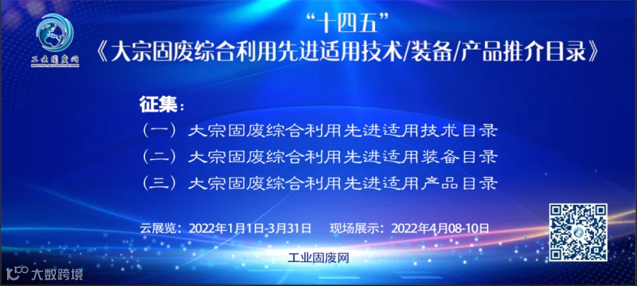 “十四五”《大宗固废综合利用先进适用技术/装备/产品推介目录》申报材料报送截至2022 年3月31日17:00。