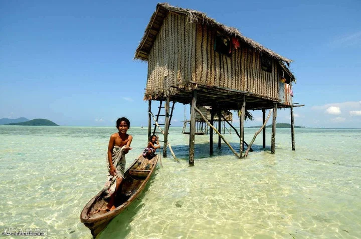 这是马来西亚小镇,一群划舟的孩子,像是在天空游荡