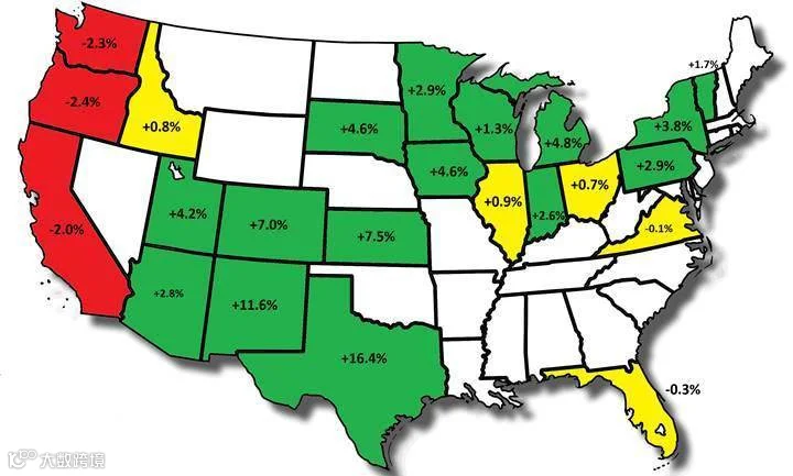 相比之下,由于没有受到冬季风暴的影响,德克萨斯州和新墨西哥州的牛奶产量大幅增长,而在2016年初的时候,他们的牛奶产量同样因为冬季的寒冷风暴受到重创。科罗拉多州的牛奶产量涨幅达7%,堪萨斯州的牛奶产量则上涨7.5%,他们牛奶产量上涨的主要原因在于奶牛数量增加。在北部平原地区,牛奶产量持续攀升,远高于中西部及东北部地区,因为在北部平原地区春季已经到来,乳制品已经开始进入生产加工状态。