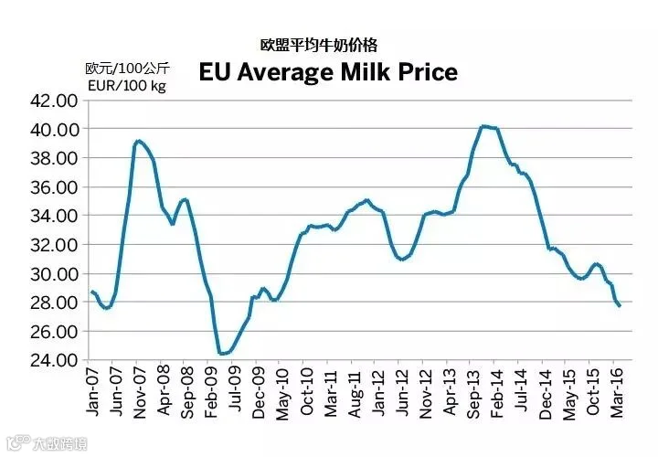 近几个月来,牛奶的价格已经下降到2009年的水平。由于奶牛数量的缩减以及在未来几个月内牛奶产量的下降,农民与预期一样不断亏损。举个例子,荷兰美素集团将5月份牛奶的保证价格下调了2.50欧元,使牛奶的价格为25.00欧元/100kg——比四月份下降了 2.42c/ L。在爱尔兰,牛奶的价格降到24.16c/ L。在宣布降价时,他们说,下调保证价格是由于预示到可参考企业的牛奶价格将进一步下降。