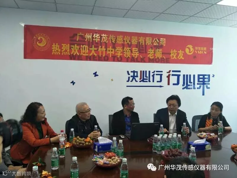 阳春三月,广州华茂传感仪器有限公司迎来了总经理沈孟生先生母校四川省大竹中学百年校庆广东地区系列庆祝活动之“华茂站”的嘉宾和朋友。到访的大竹中学嘉宾有王光俊老校长、徐竹鸣校长、熊传信副校长、徐殿容副校长、赖长林副校长,陈绍东工会主席、郑云飞办公室副主任、杨标特级教师、唐玲摄影老师等;还有南方报业邹高翔校友,大竹中学广东校友会胡德敏会长,校友施晓亚副会长以及华为技术公司刘洋校友等。作为大竹中学百年校庆广东地区庆祝活动的名誉会长,沈孟生总经理介绍了华茂传感公司的成长历程,回忆了在竹中学习生活的点点滴滴,并接受访问团的采访。沈总说,首先祝母校百年华诞生日快乐。华茂公司的发展历程中处处体现出“严谨求实,奋发进取”的竹中精神。大竹中学人才辈出,也有不少校友毕业于华工、广工、南方医科大学等高校,华茂公司也和这些高校建立了深度合作的关系,欢迎广大竹中校友来公司参观访问。