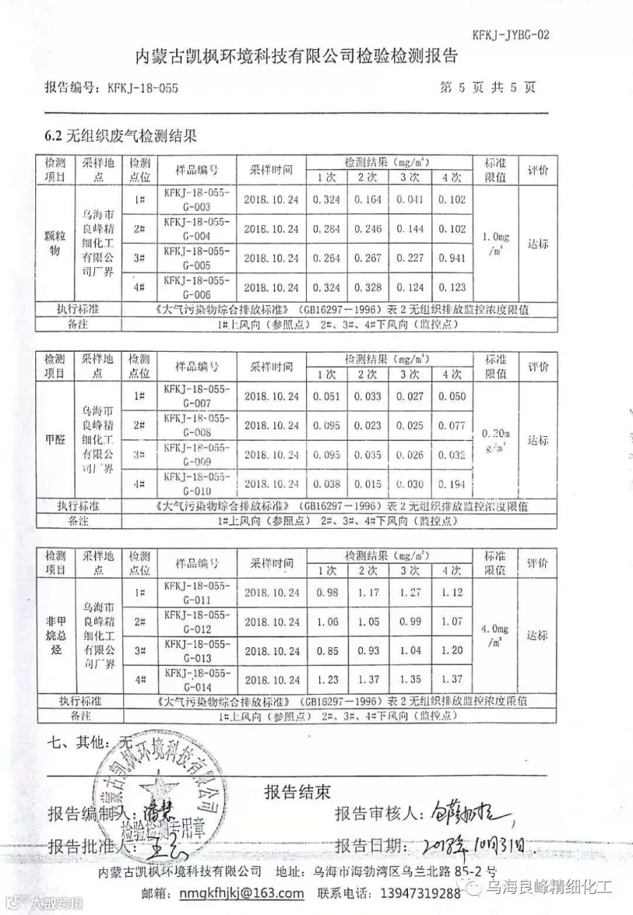 2018年乌海良峰第四季度大气监测信息公布