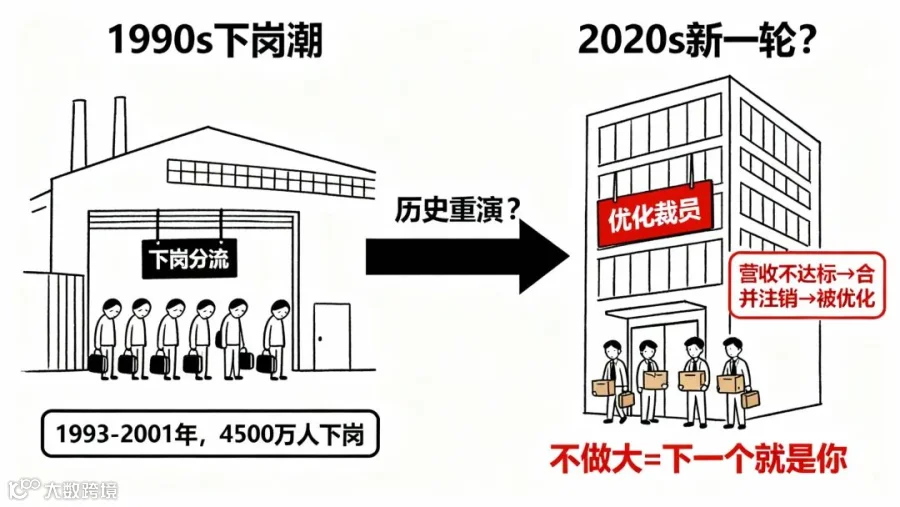 呵呵,还记得20世纪90年代中后期,尤其是1993年至2001年这一阶段,中国国企大批职工下岗嘛?据统计,全国累计有约4500万国有企业职工下岗,涉及上亿家庭人口。