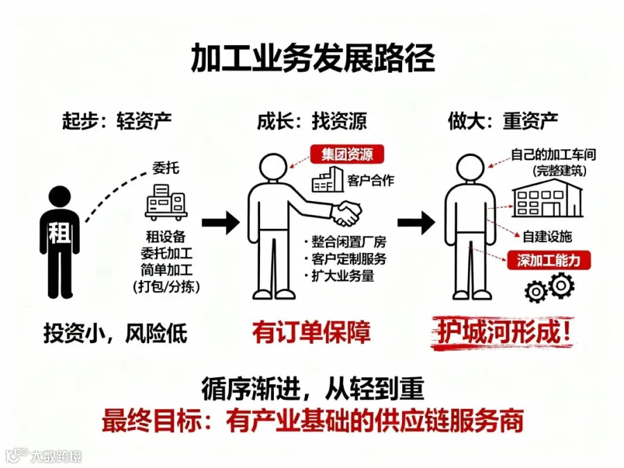第四,加工可以增加资产规模。你要建加工车间、买加工设备,这些都是实实在在的资产。有了这些资产,你在集团内部的分量就重了,不是那么容易被砍掉了。
